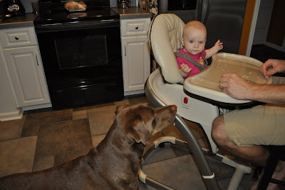 Time with Daddy...I love where Chad's head is resting;-)...Layla wants her block back!!